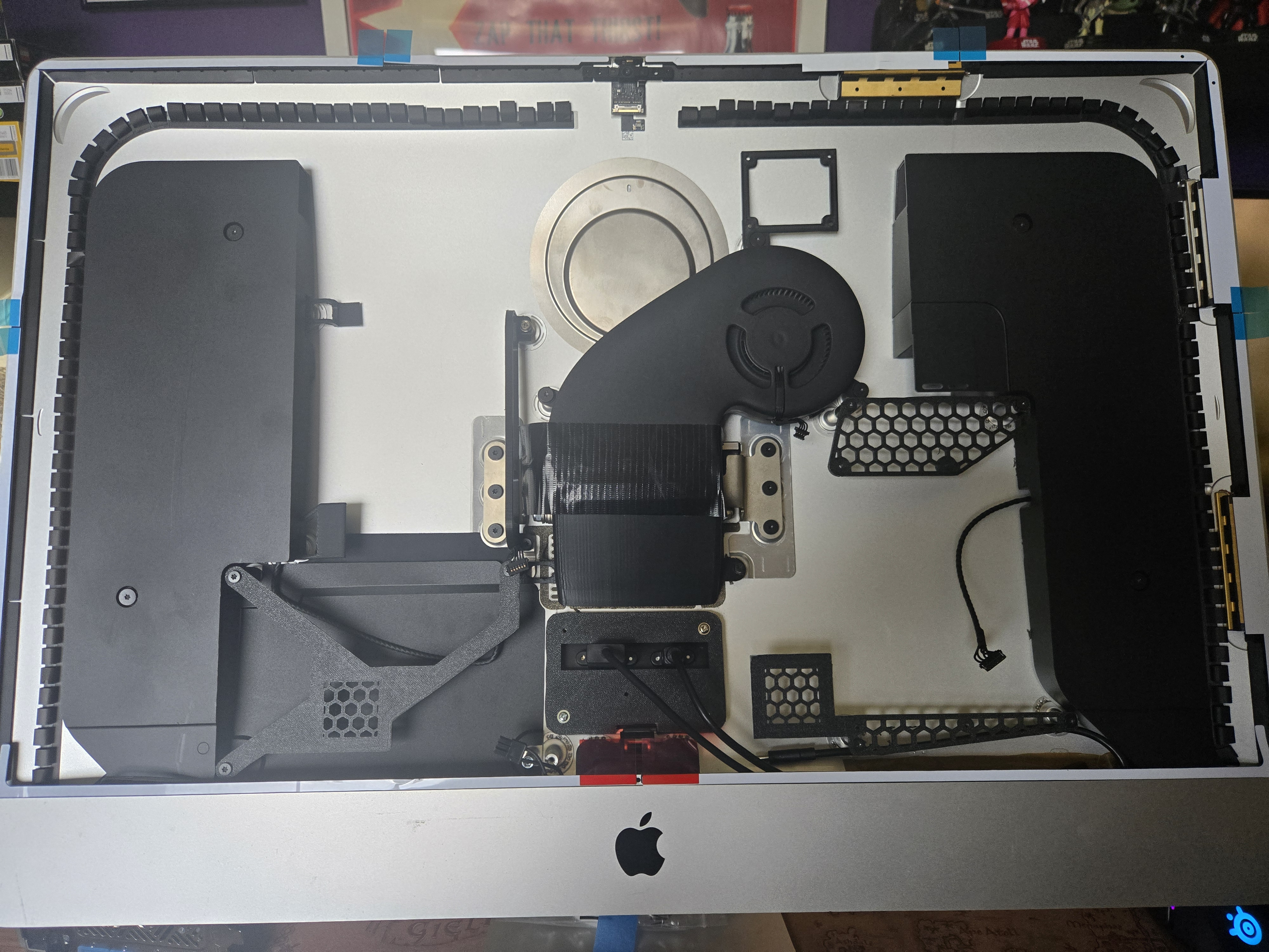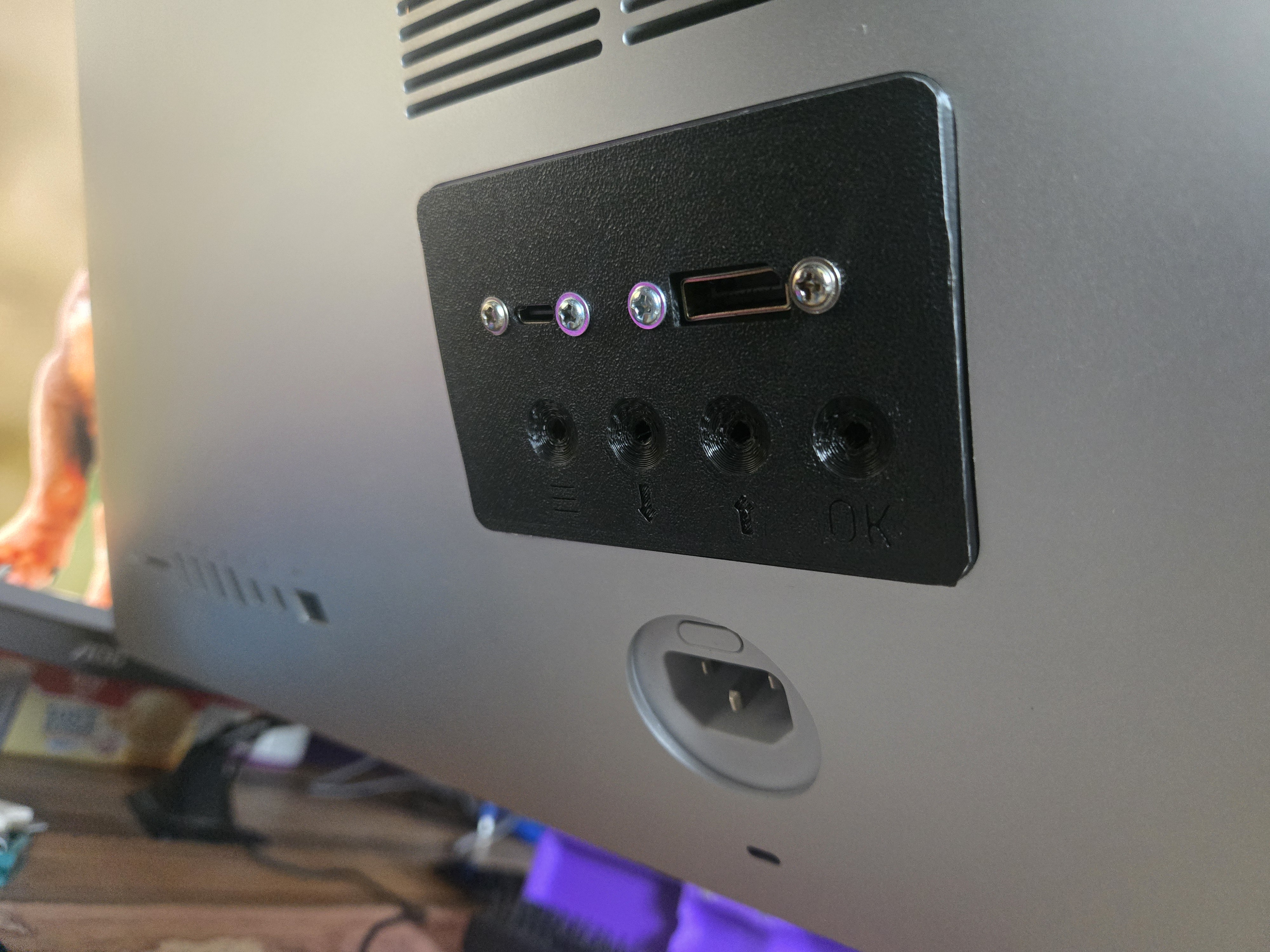 I did do some modications to my parts, I cut the power button off of the supplied board as I just wired in the original iMac power button to serve that function, this allowed me to print my RAM cover which built in buttons and DisplayPort/USB C ports for a much cleaner look. I wired in the original iMac power plug to power the Meanwell power supply.